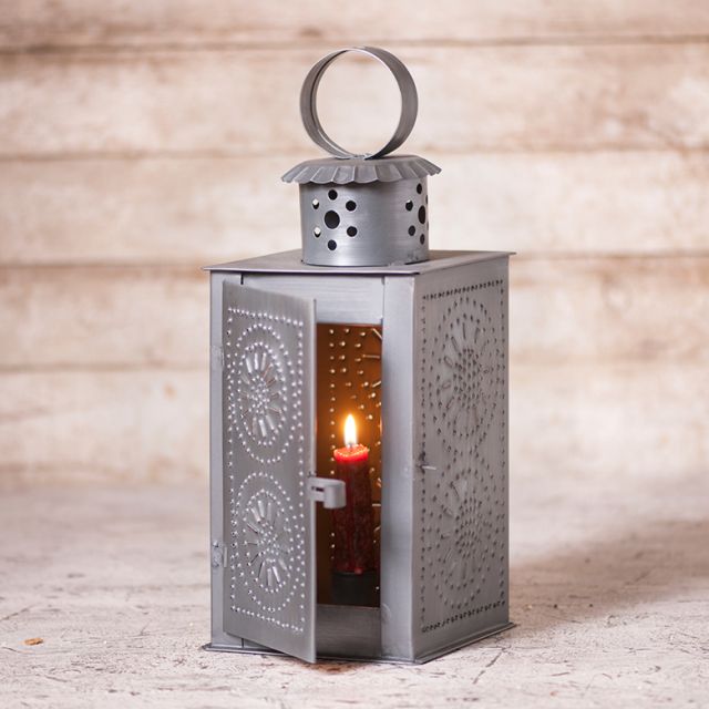 Watchman's Square Candle Lantern in Antique Punched Tin