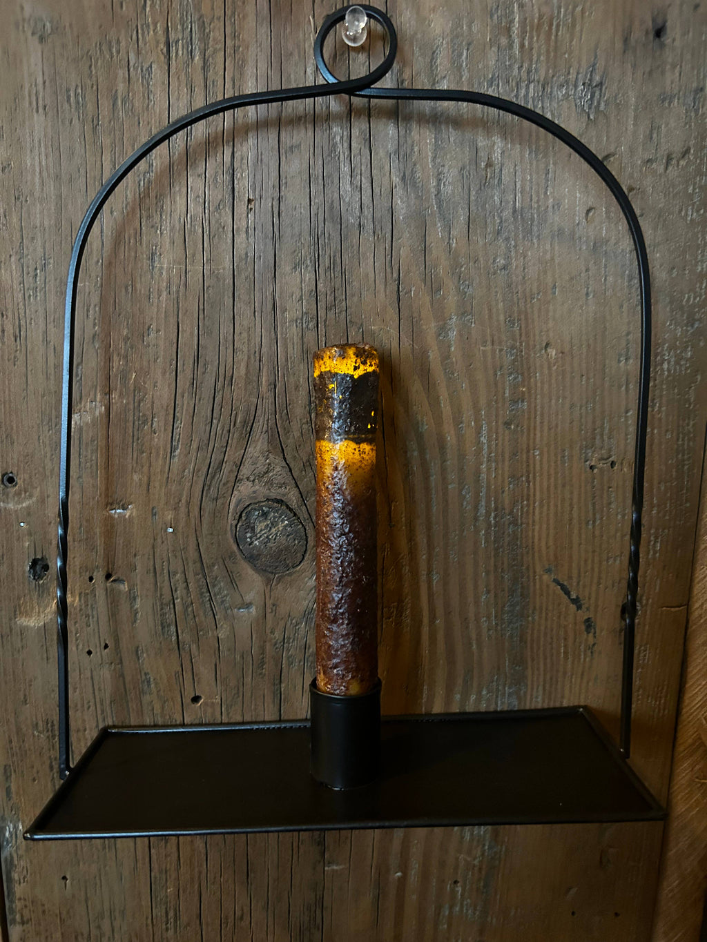Colonial Primitive Black Wrought Iron Hanging Candle Pan