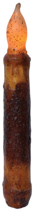 A warm, flickering candlelight look is easy and safe with our Burnt Mustard Timer Taper! This 6" LED taper has a deep golden brown coating with a primitive texture, and features a built in timer. The candle stays on for 6 hours and then turns off for 18 hours. Requires 2 AA batteries (not included).