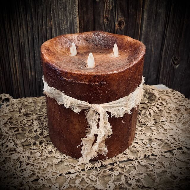 Moving Triple Flame Grungy Pilar w/Cheesecloth Ribbon 6x6