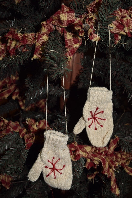 Cream Mitten/Red Snowflake Ornament