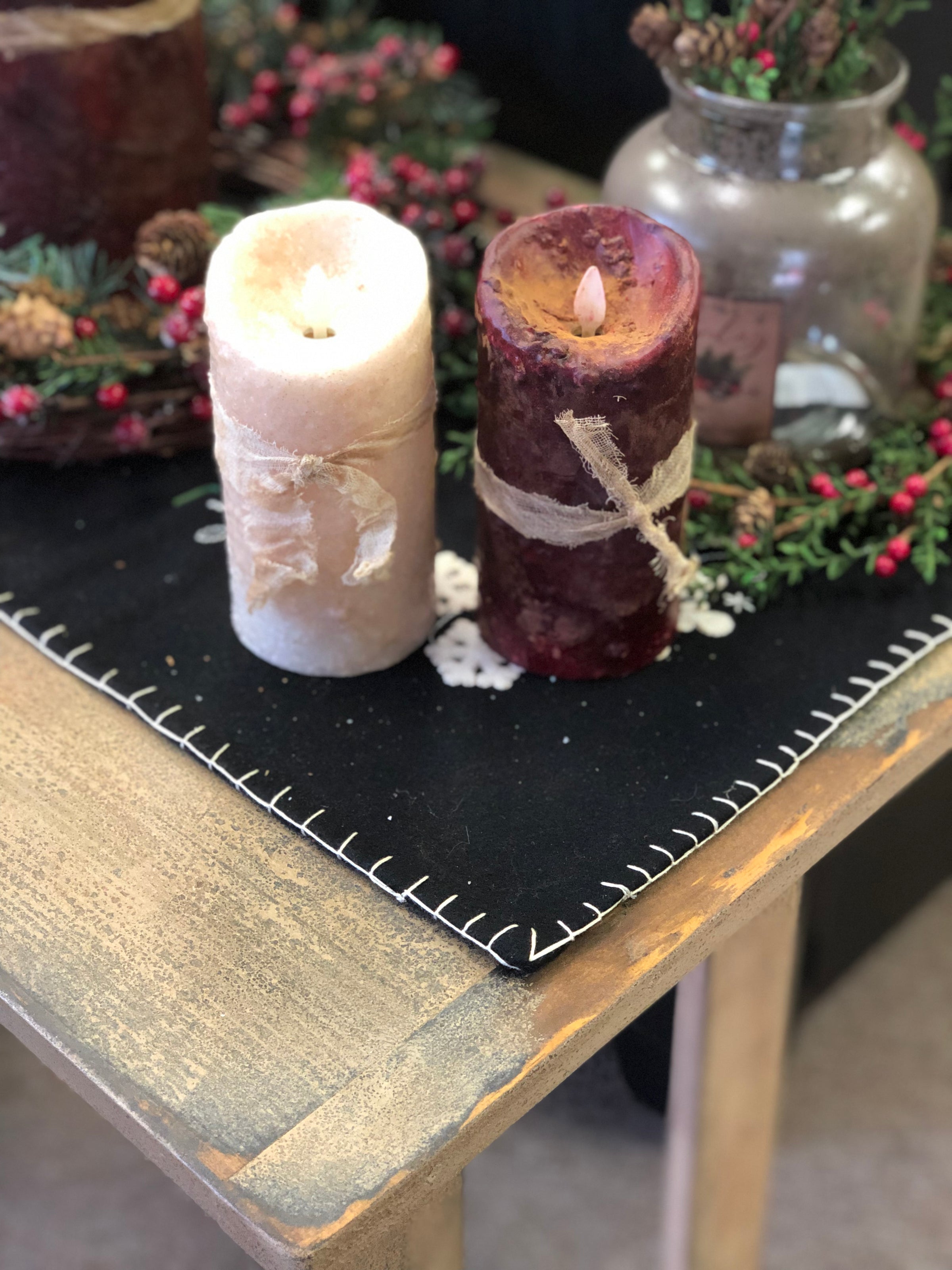 Moving Flame Grungy Dipped Candle W/ Ribbon