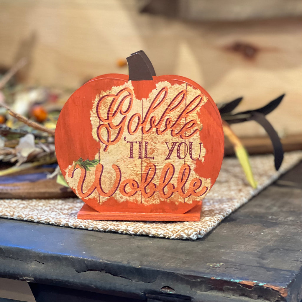 Wood Gobble "Til You Wobble Pumpkin Candle Holder