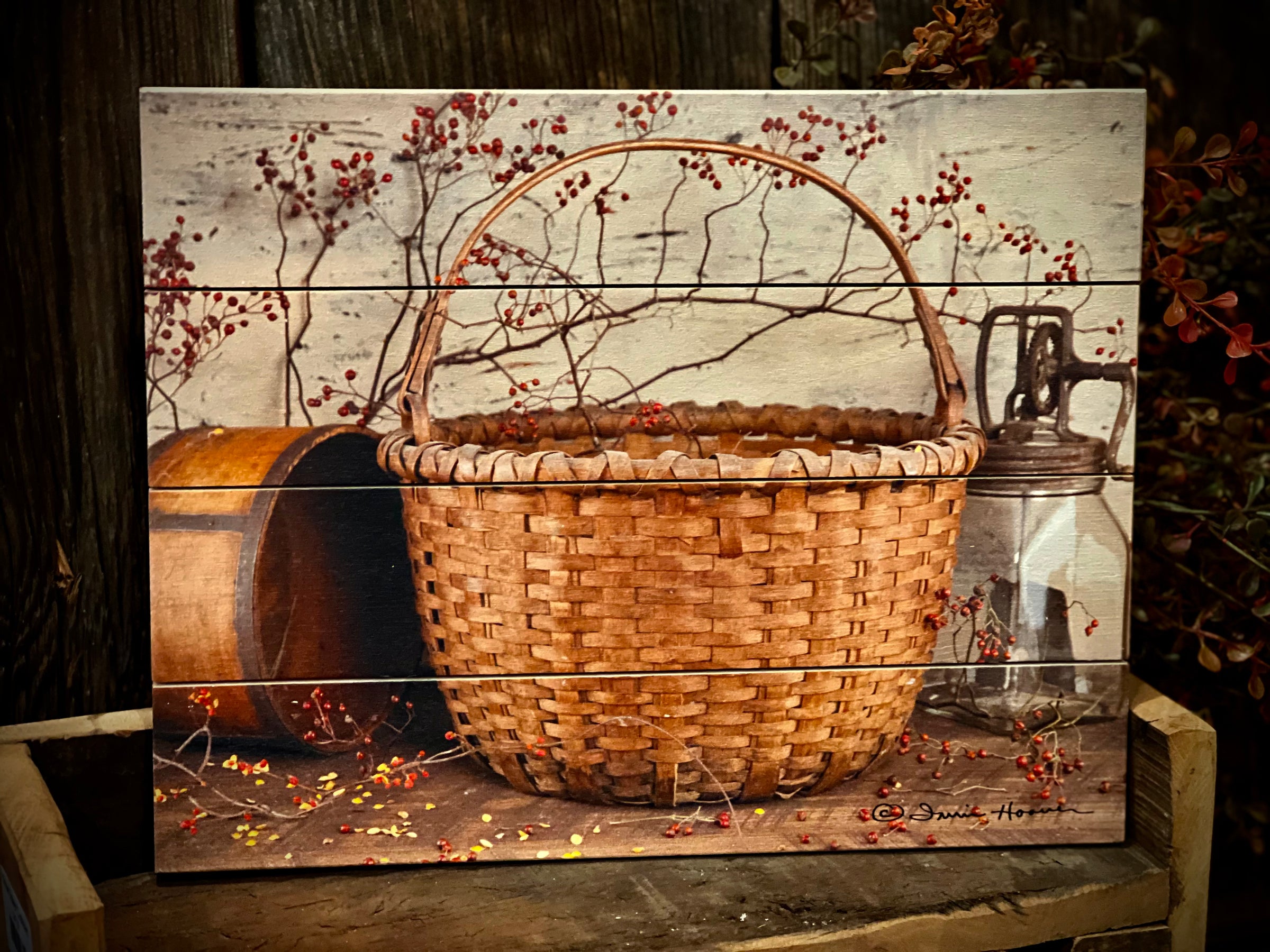 Basket and Roseberries Pallet Art