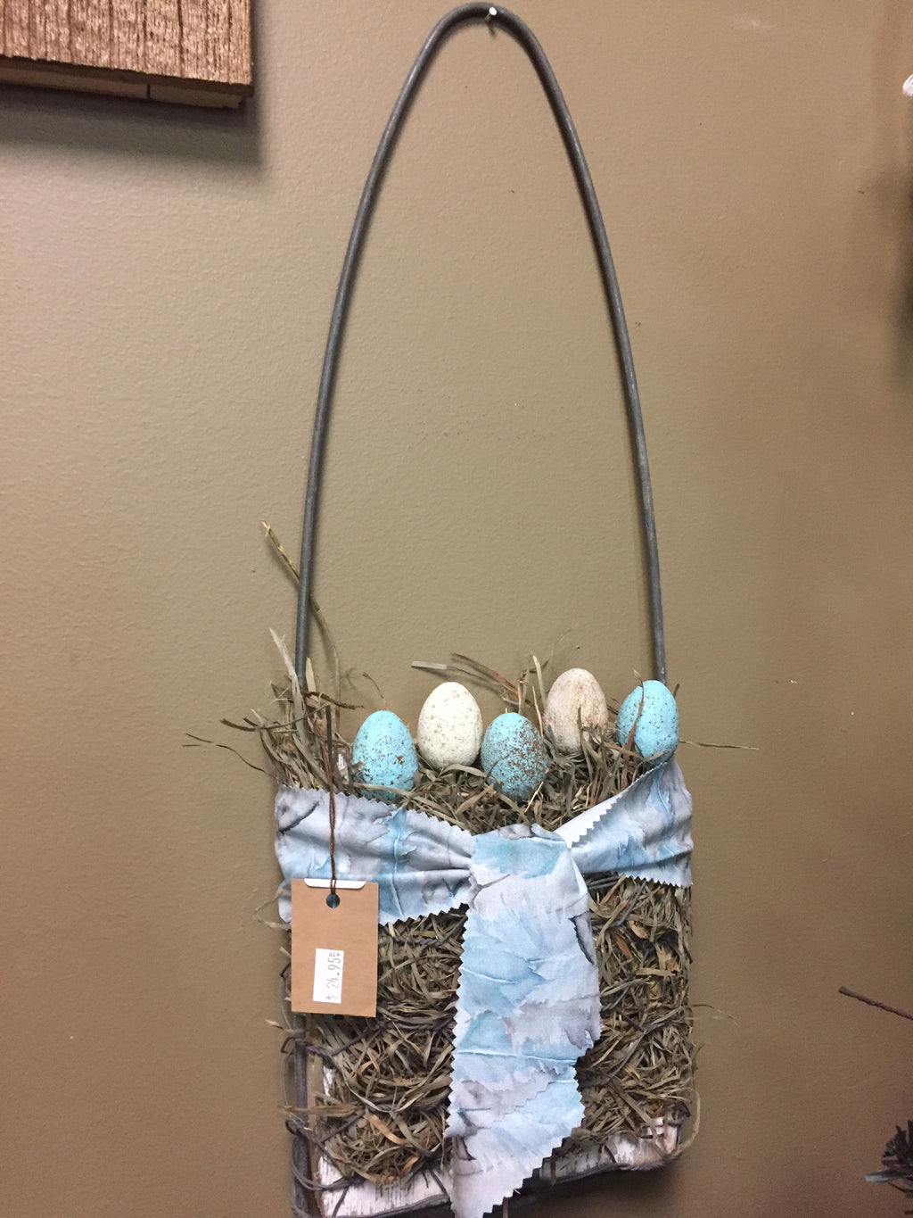 Wood & Wire Hanging Wall Pocket w/ Egg Picks