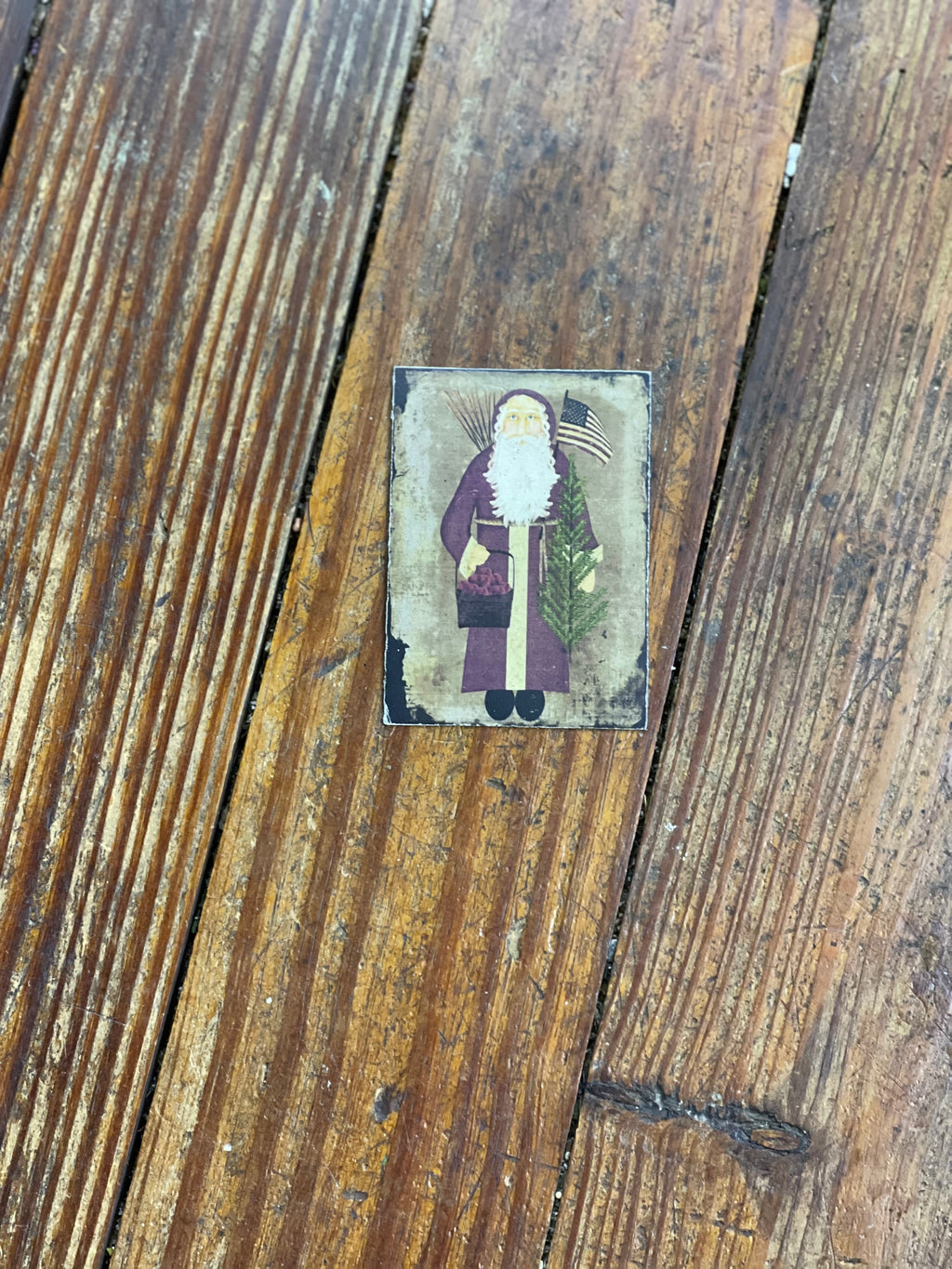 Santa w/ Feather Tree, Basket & Flag Magnet