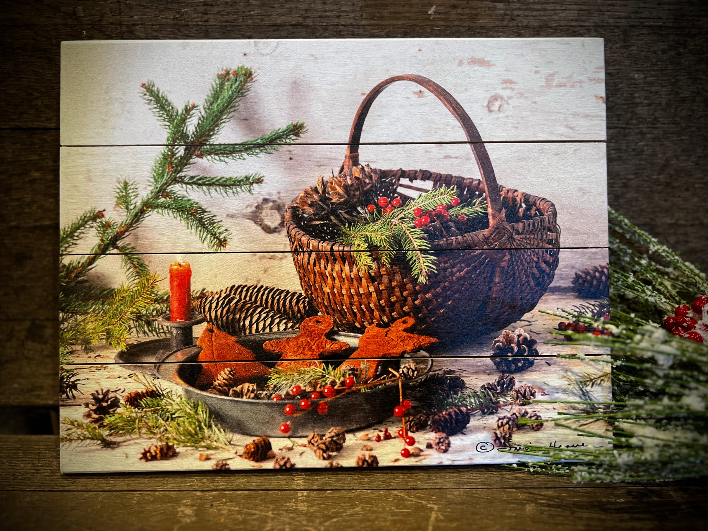 Gingerbread with Pinecones Christmas Rustic Pallet Art