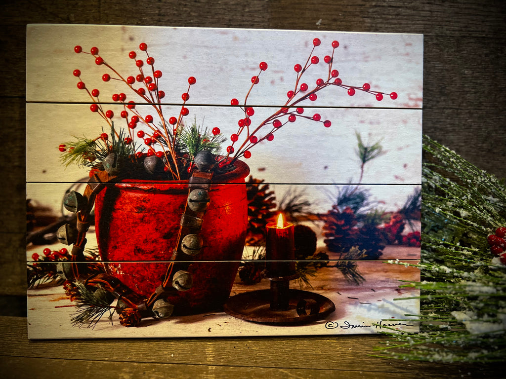 Jingle Bells by Candlelight Christmas Rustic Pallet Art