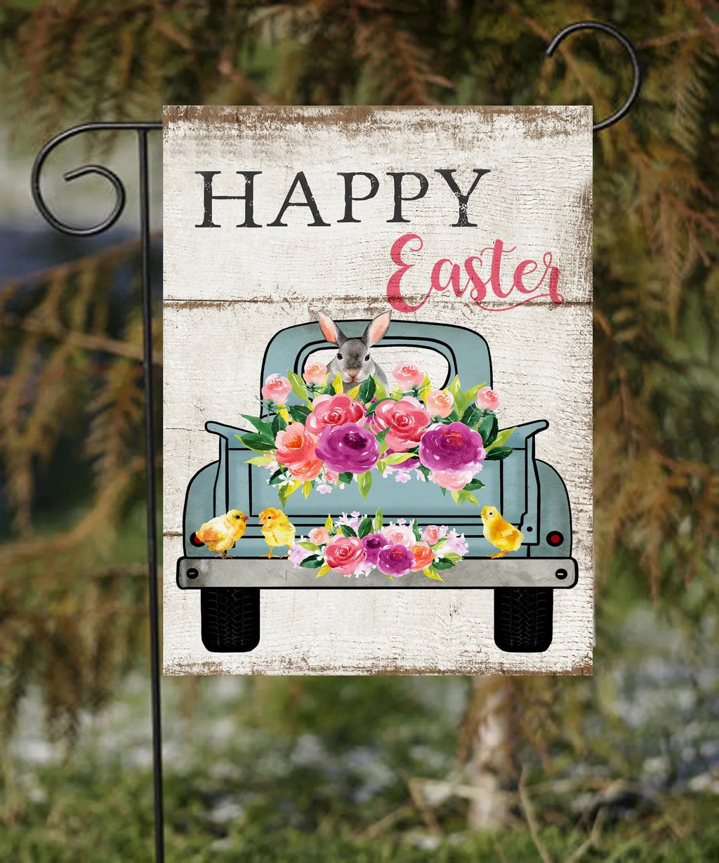 Happy Easter Bunny Blue Truck Garden Flag