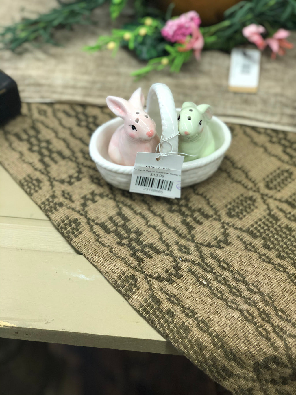 Bunny Salt & Pepper Shakers w/ Basket Holder