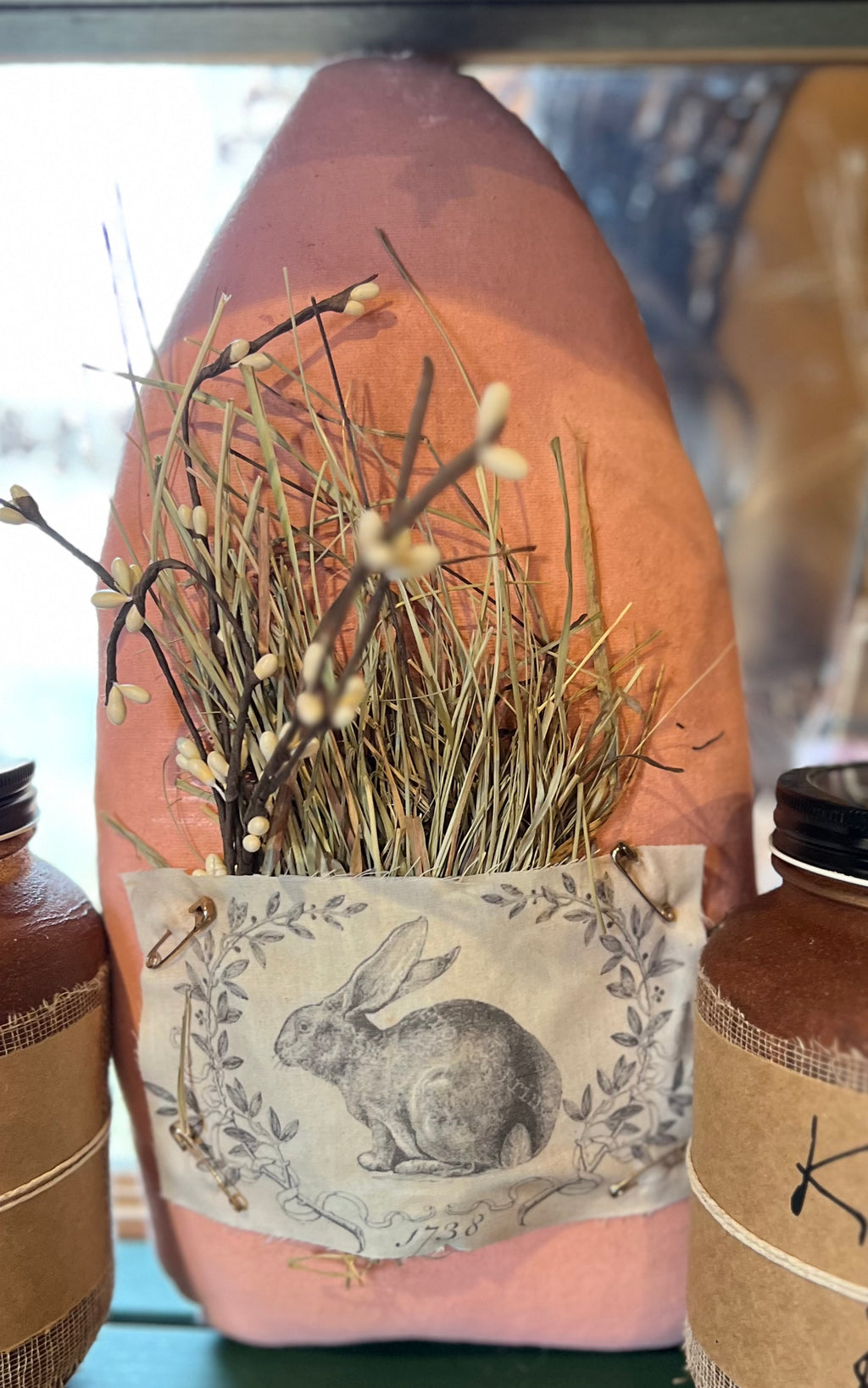Hanging Wood Bunny w/ Egg Pocket