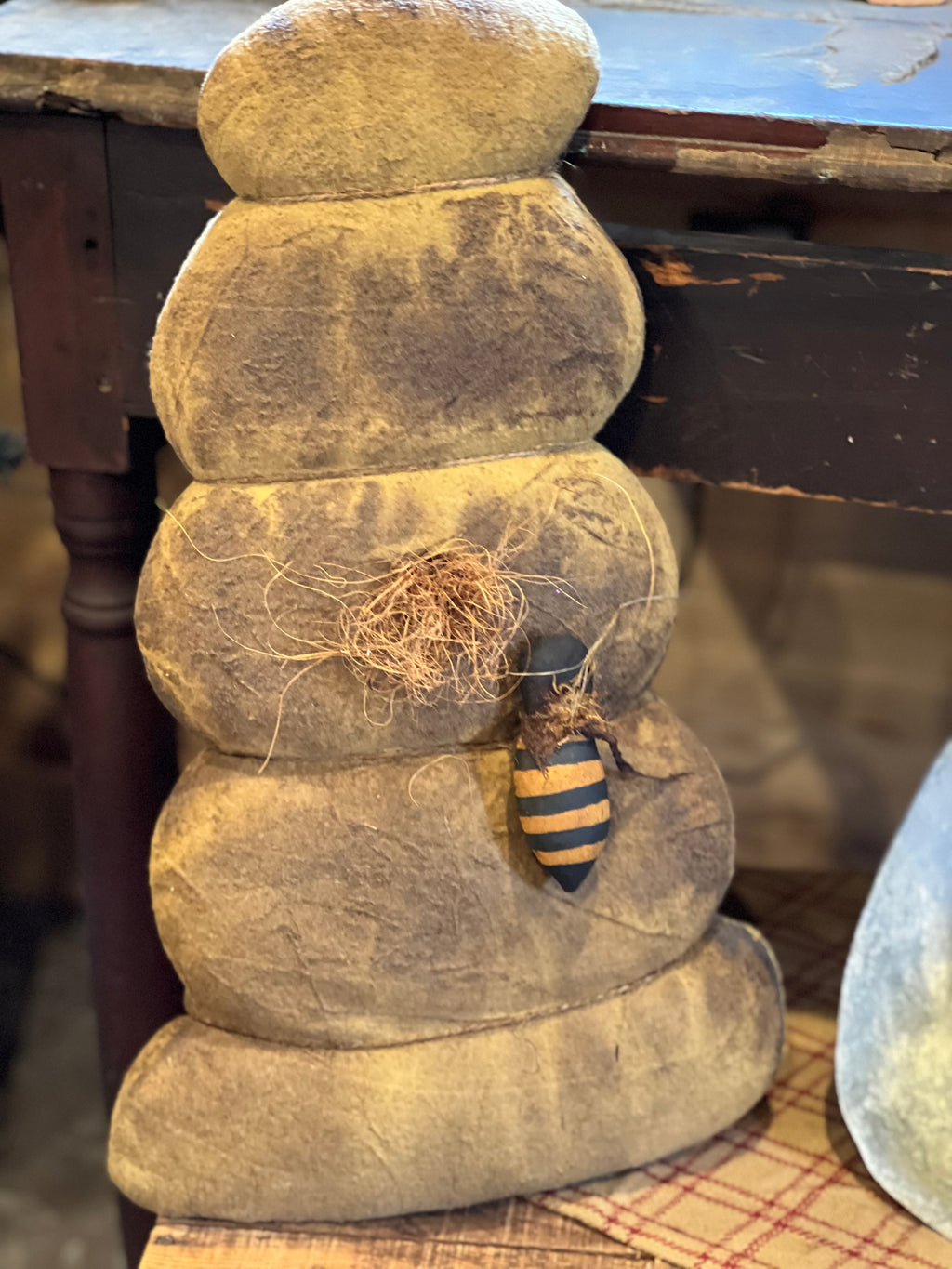 Large Aged Wool Bee Hive w/ Hand Sewn Bee