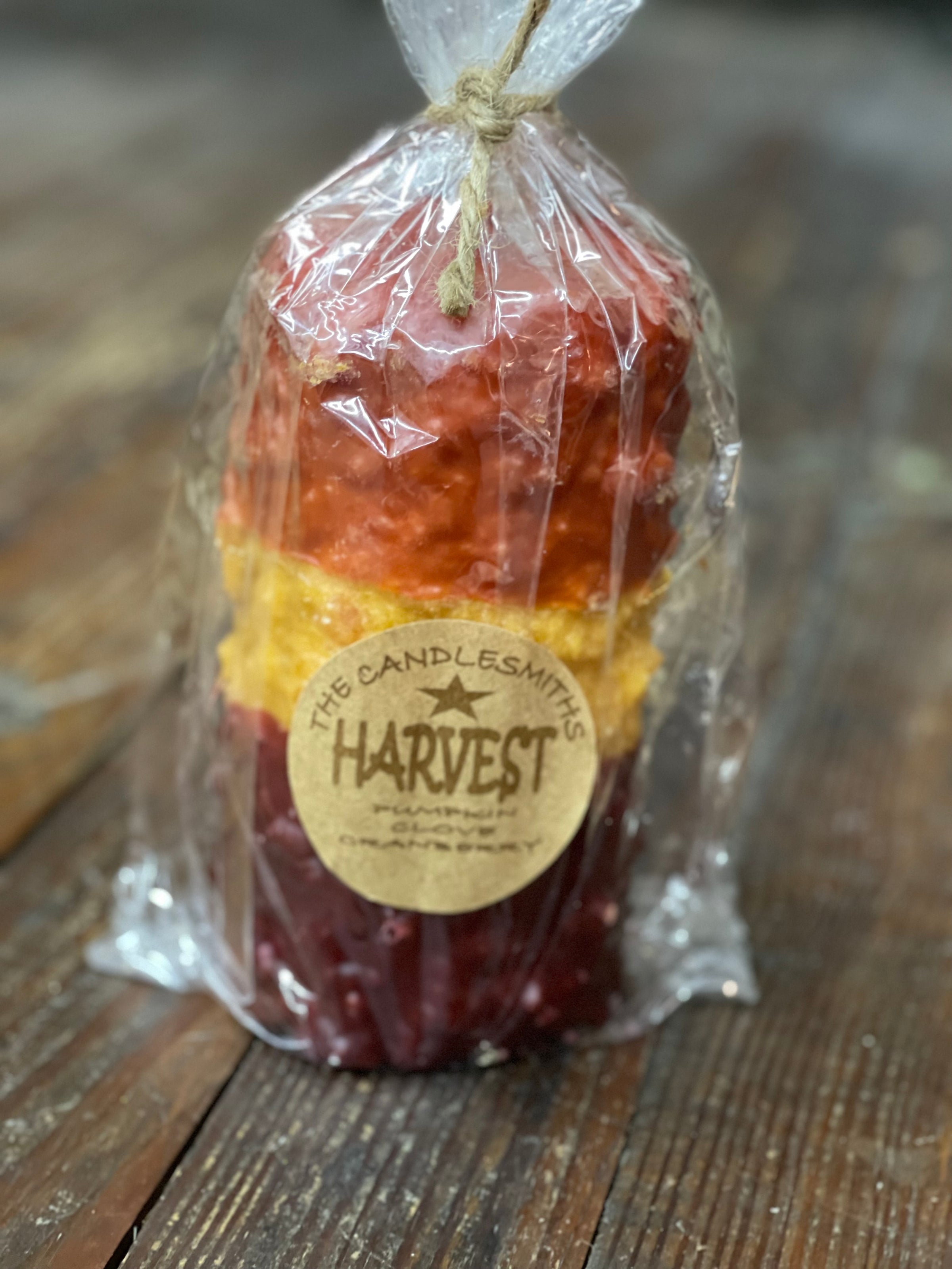 6" tall with a layer of Pumpkin Clove and Cranberry