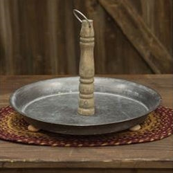 Our Tin Plate with w/Wood Handle can be a staple centerpiece for your home. You can easily use a small wreath, large candle ring, or even some garland, and put in the plate to change it out each season! The possiblities are truly endless! Diameter of plate measures 15".