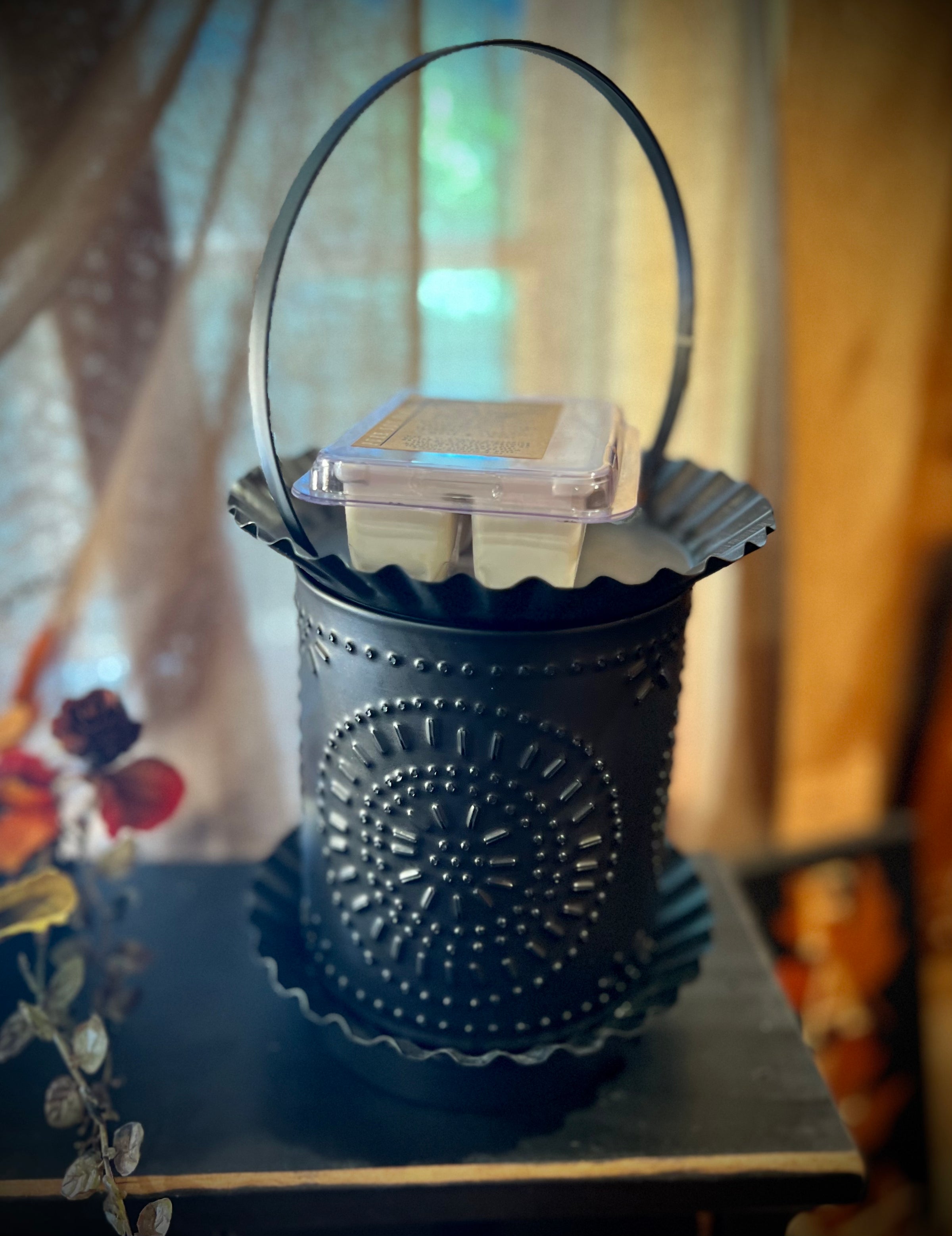 Simply place a wax melt in the lid, turn on the light, and in about an hour, the wax melts and fills the room with fragrance! Perfect for kitchens, bedrooms, powder rooms, and almost any room in your home! It is easy to clean; just place the removable lid in your freezer for an hour, and the used wax pops right out. Wired with one E12/Candelabra socket, 40 watts max. It has a 3-ft cord and a line switch. Bulb included. Handcrafted in Pennsylvania.