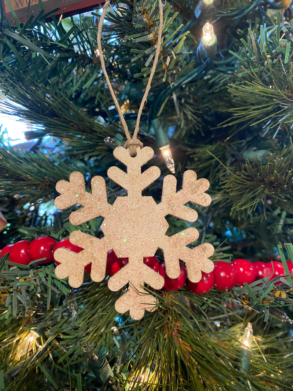 Wooden Glitter Snowflake Ornament