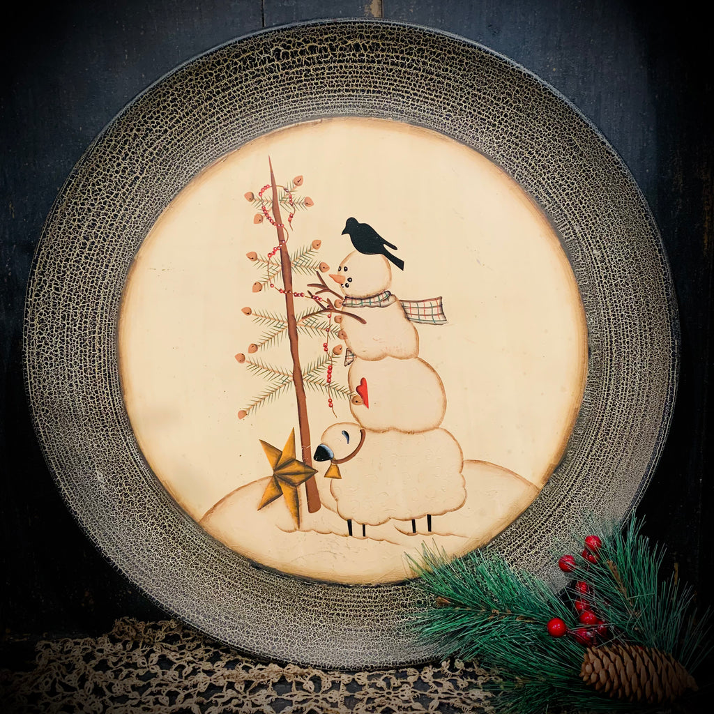 Wooden Plate Crow, Snowman, Sheep 21 3/4"