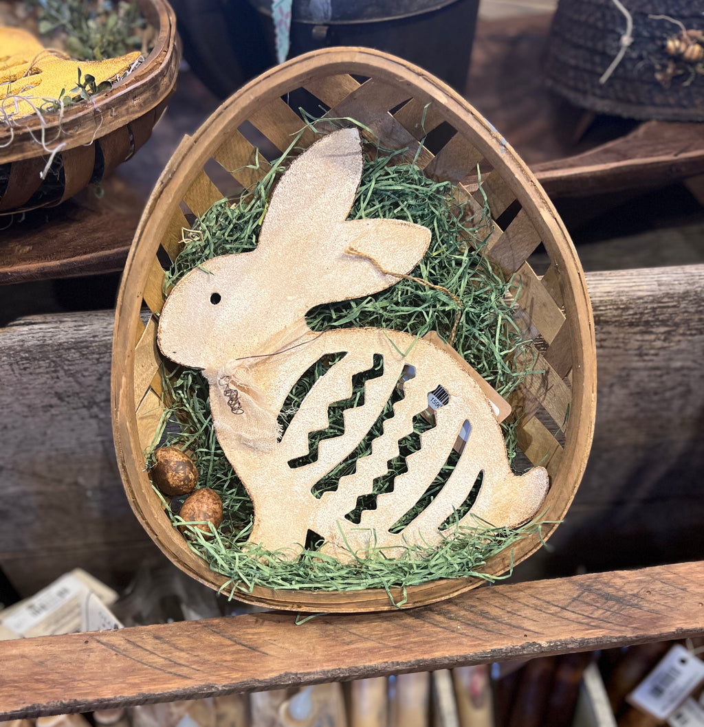 Wooden Painted Bunny In Egg Basket