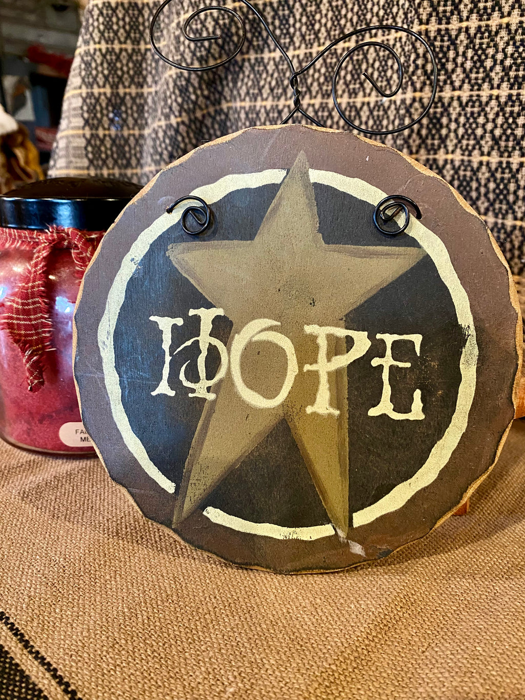 Hanging Wooden Round Hope Sign