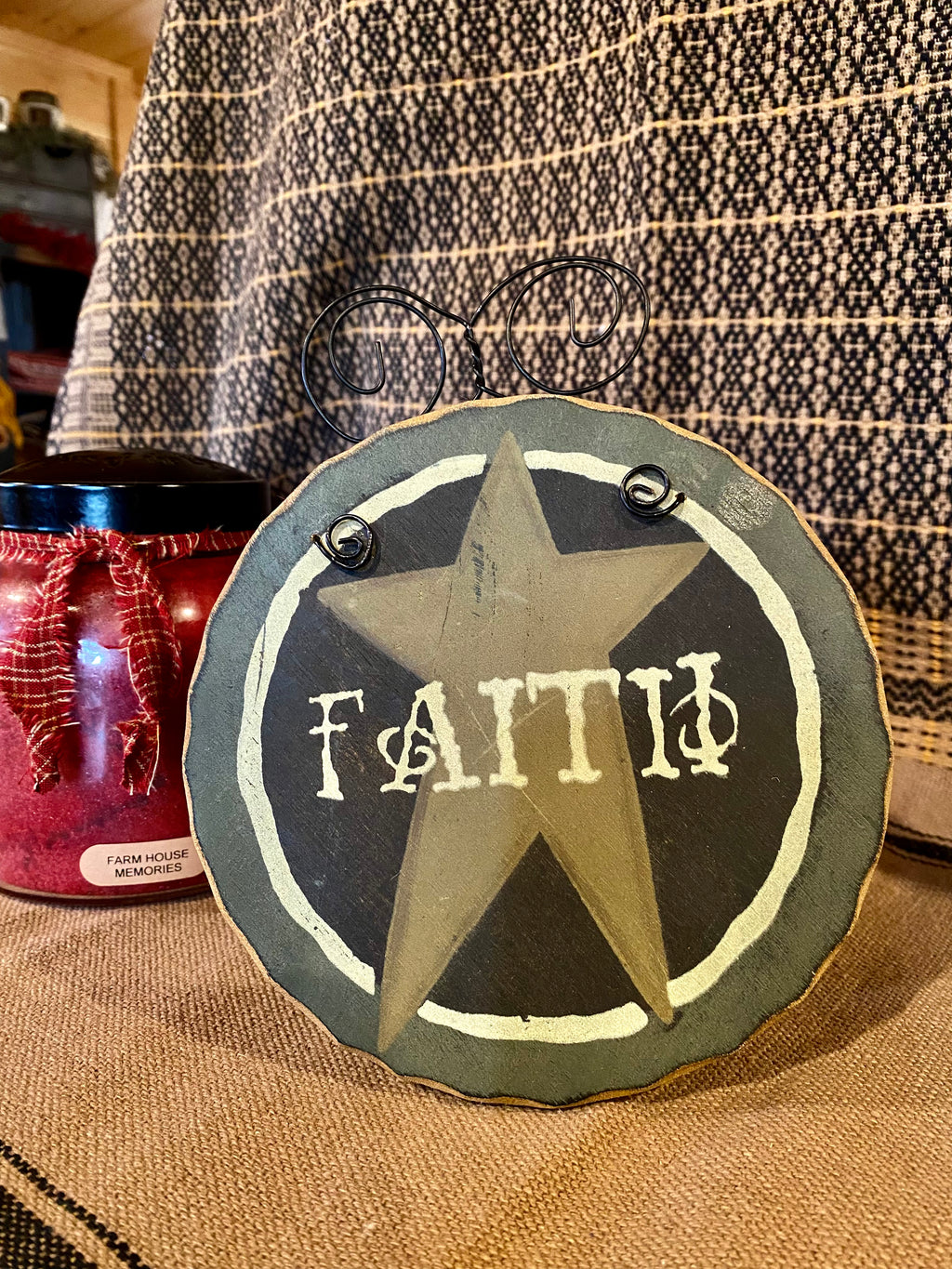 Hanging Wooden Round Faith Sign