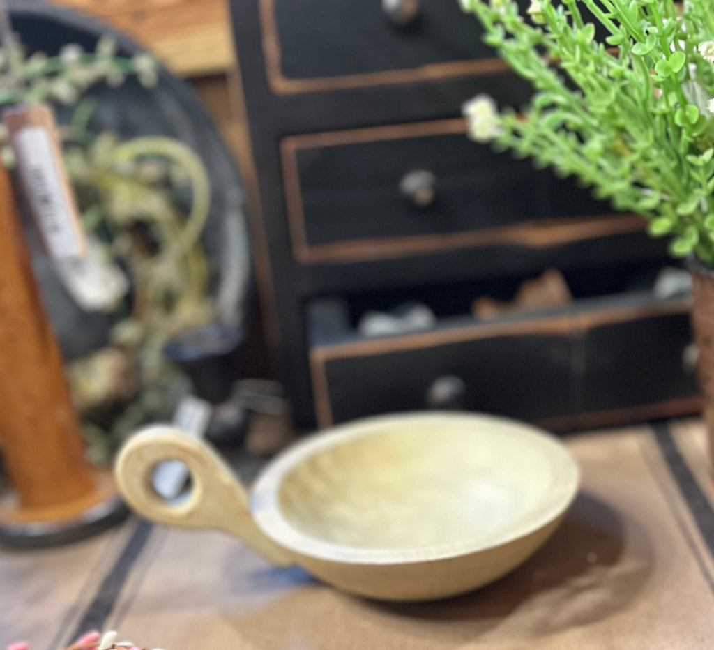 Wooden Antique White Distressed Bowl w/ Handle