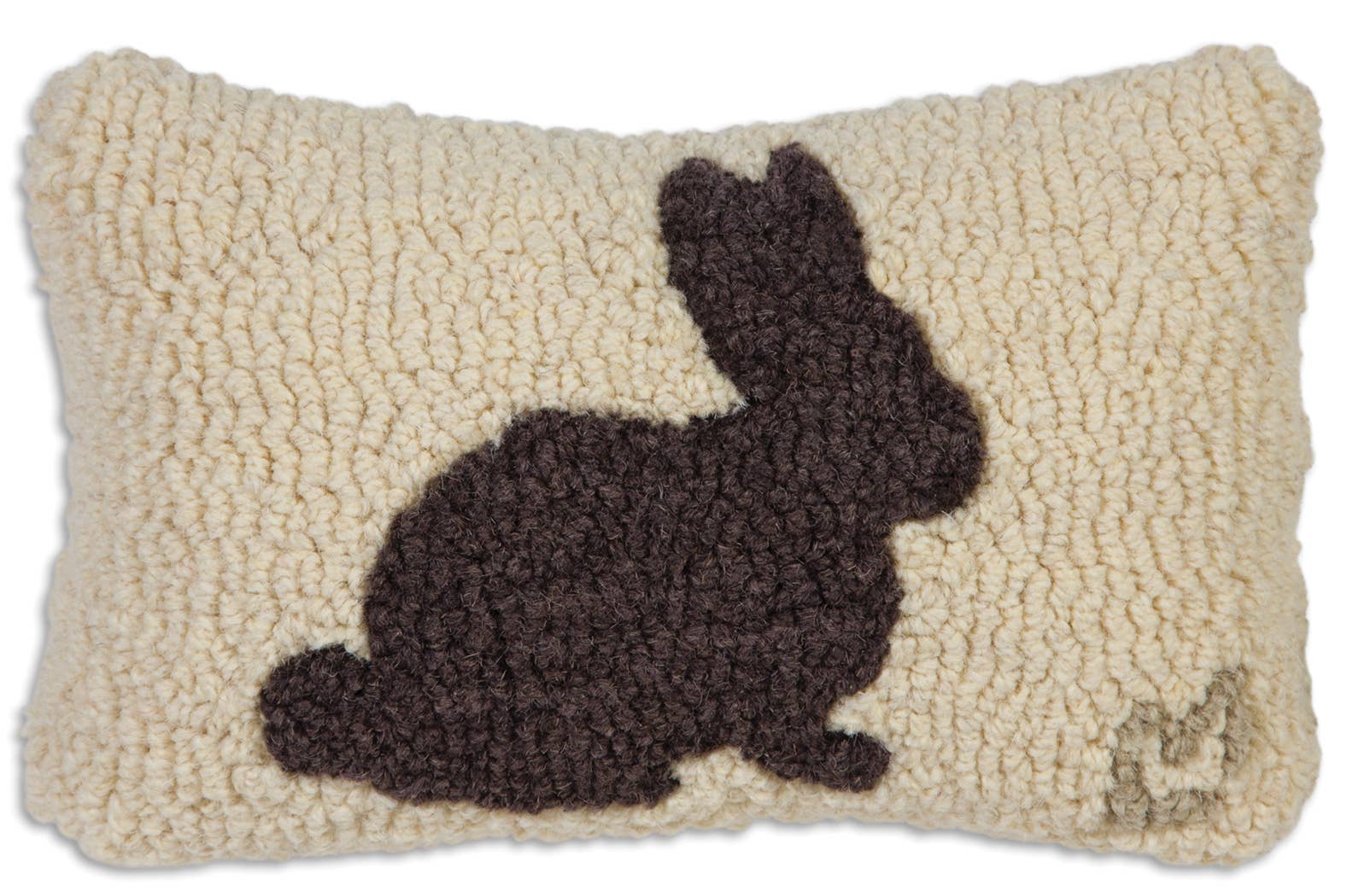 8" x 12" hand hooked pillow, made with 100% natural wool. Zippered velveteen backing with poly-fill pillow insert. Designed in Vermont by Laura Megroz.