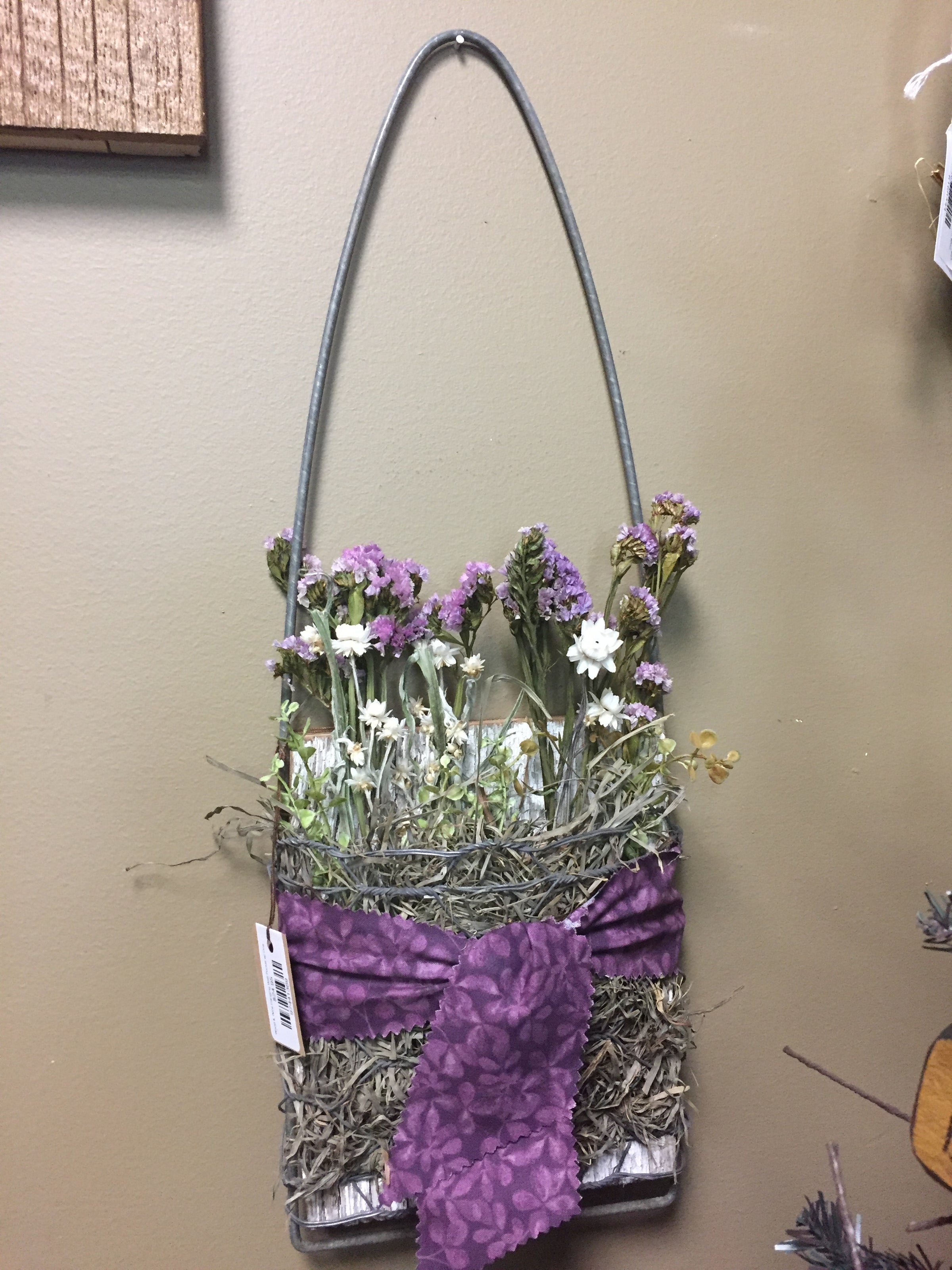 Wood & Wire Hanging Wall Pocket w/ Dried Flowers